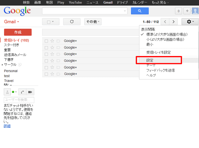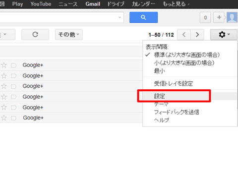 1.パソコンからGmailにアクセスし、設定を押します