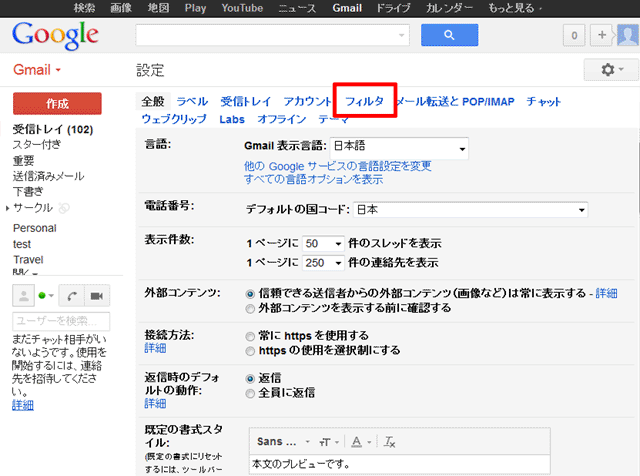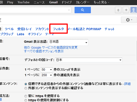 Gmailのドメイン指定受信は、パソコンから行ってください。