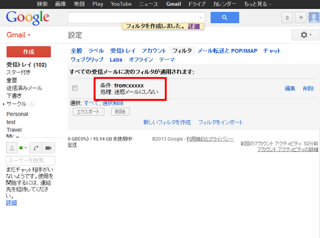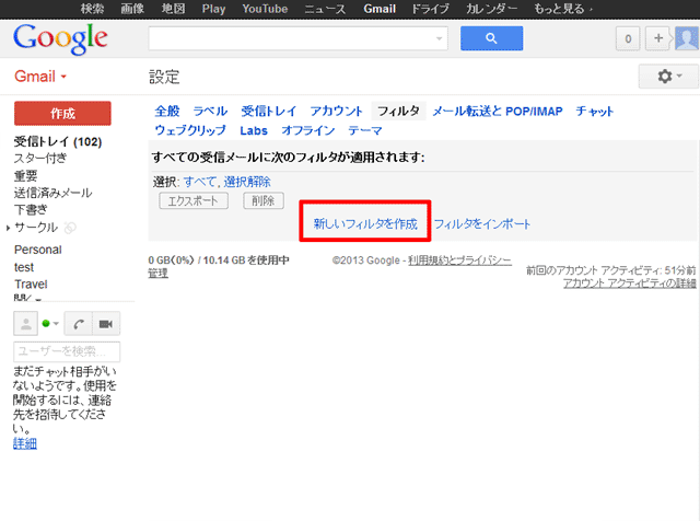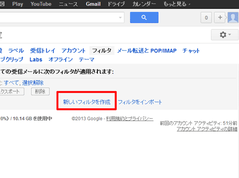 3. 【新しいフィルタを作成】をクリック。